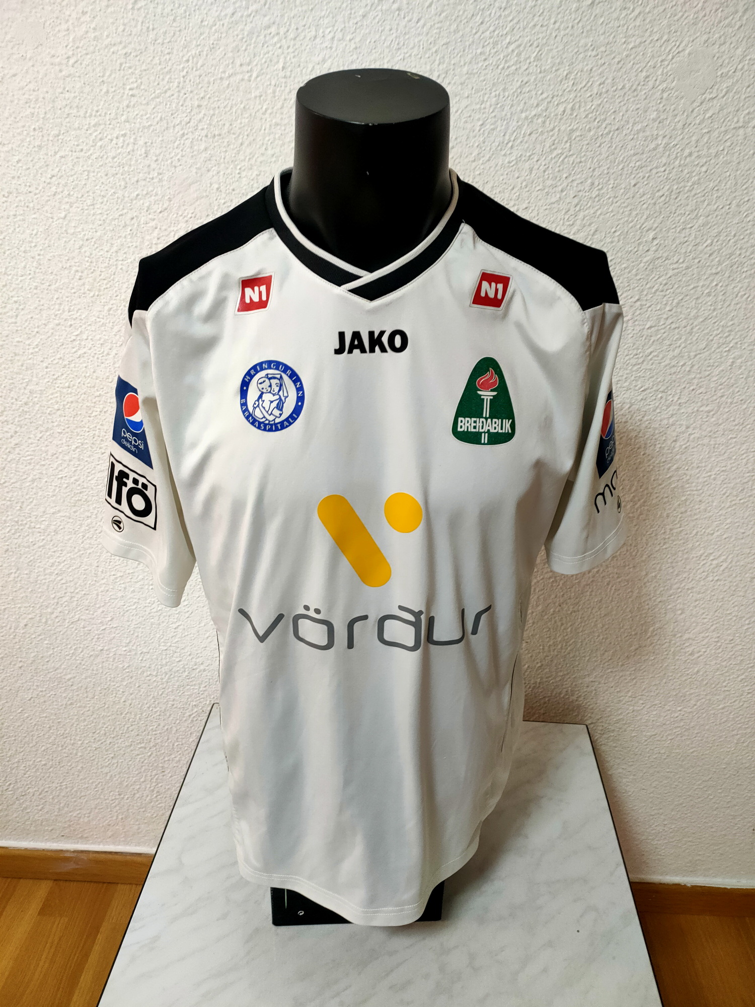 La primera camiseta de la liga de Islandia llega a mi colección a traves de mi amigo Xavi Tamurejo, me la trajo a Badalona cuando jugamos la final de la copa Catalunya. Una camiseta de las raras que tengo en la colección.