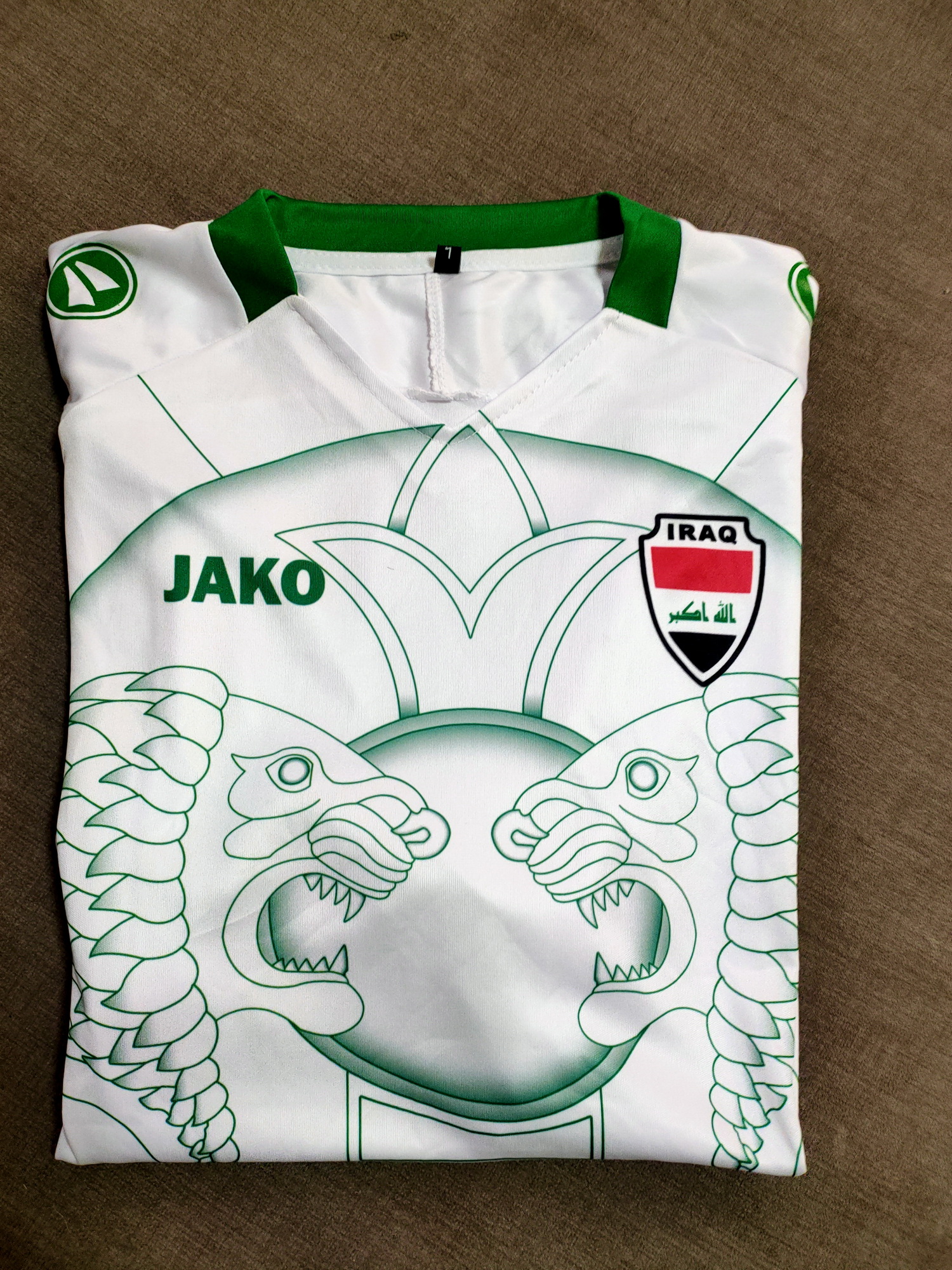 Equipación visitante de la selección de Irak traída por Javi Benavent en su etapa en la selección asiática.