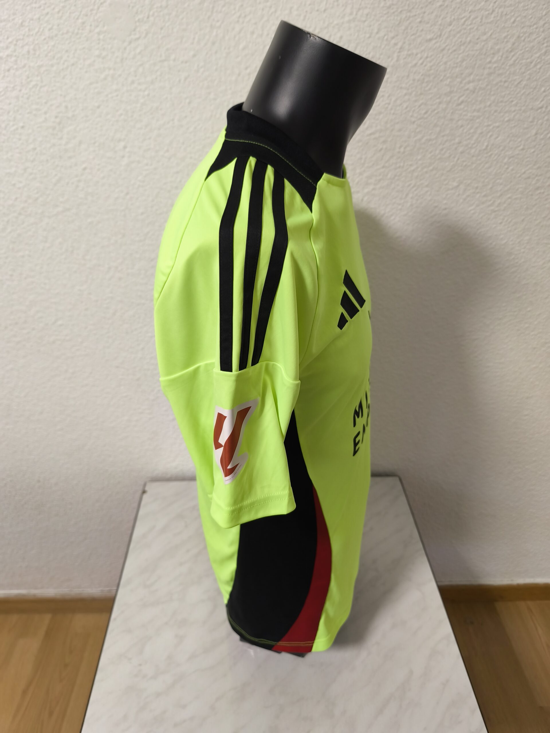 Camiseta del Mirandés versión visitante de la 25/26, usada durante la pretemporada de la misma por el conjunto Leonés. Cuando vinieron a jugar, jugaron con la primera equipación.