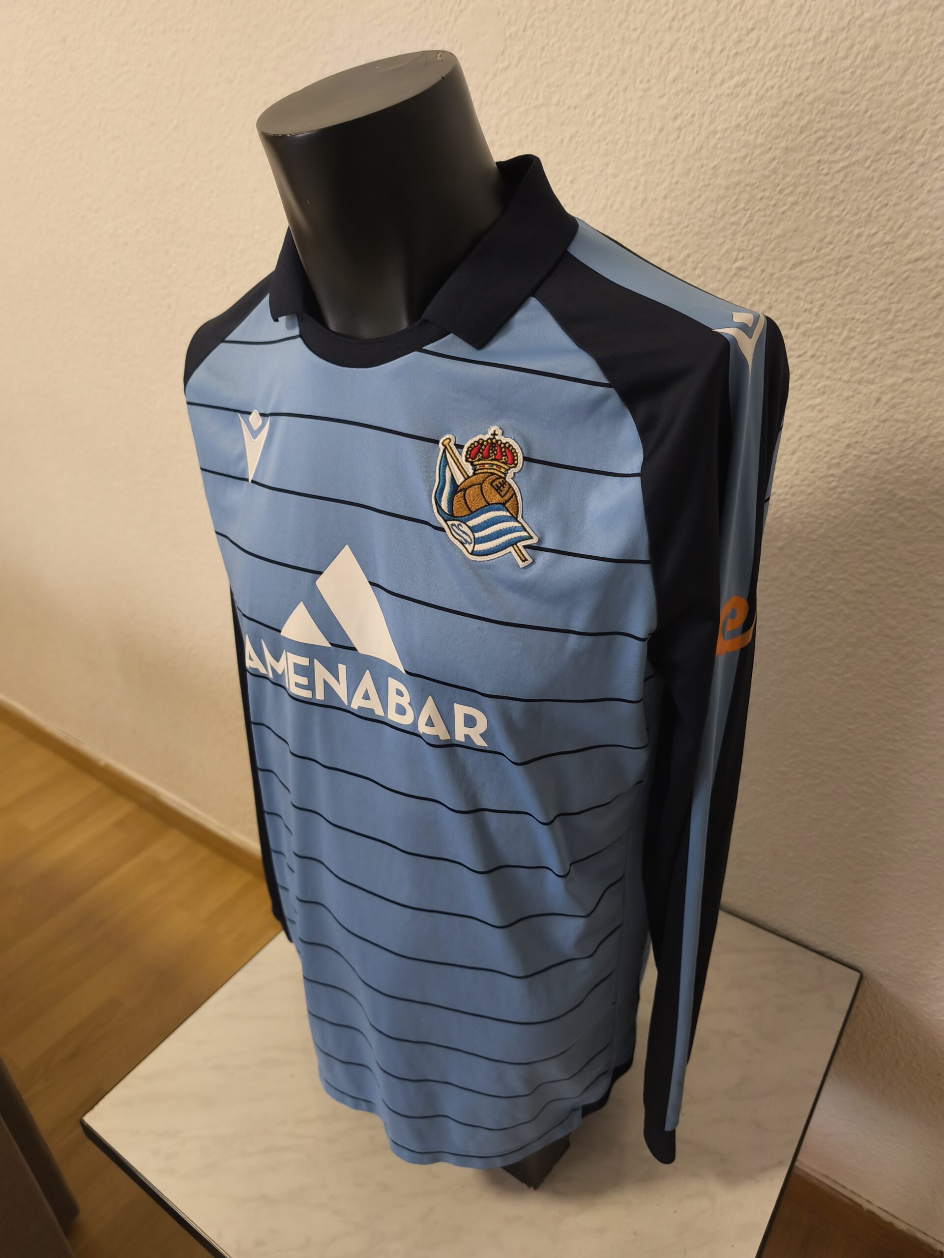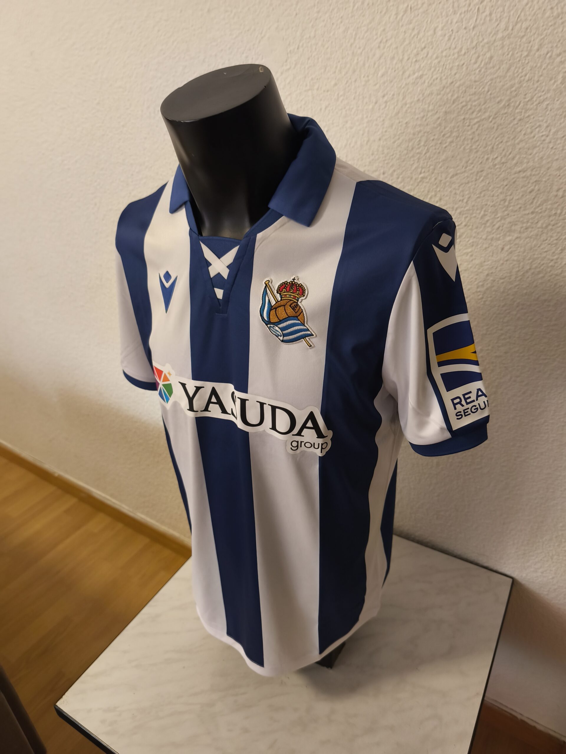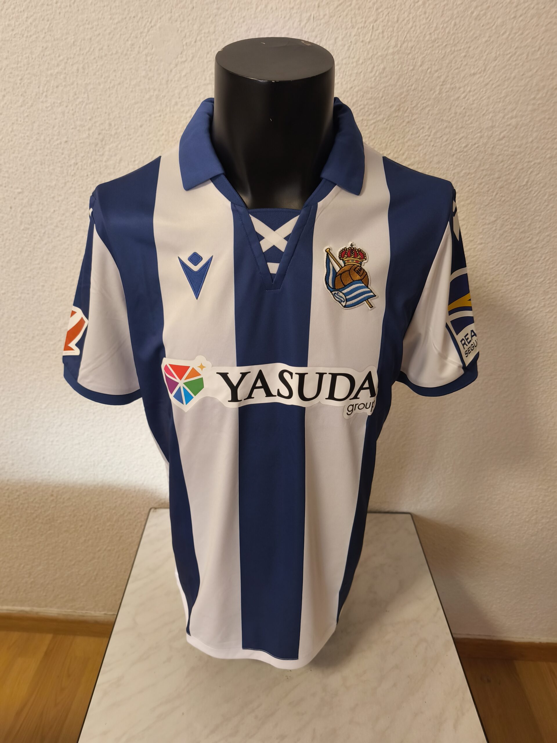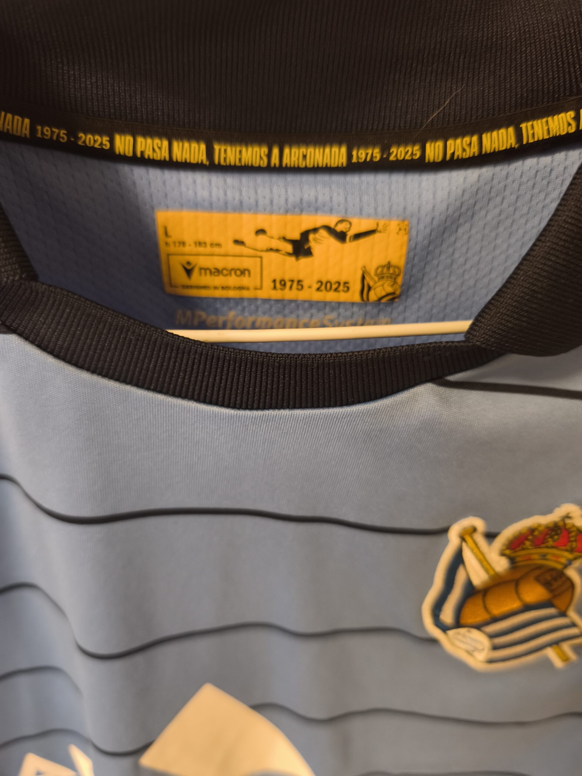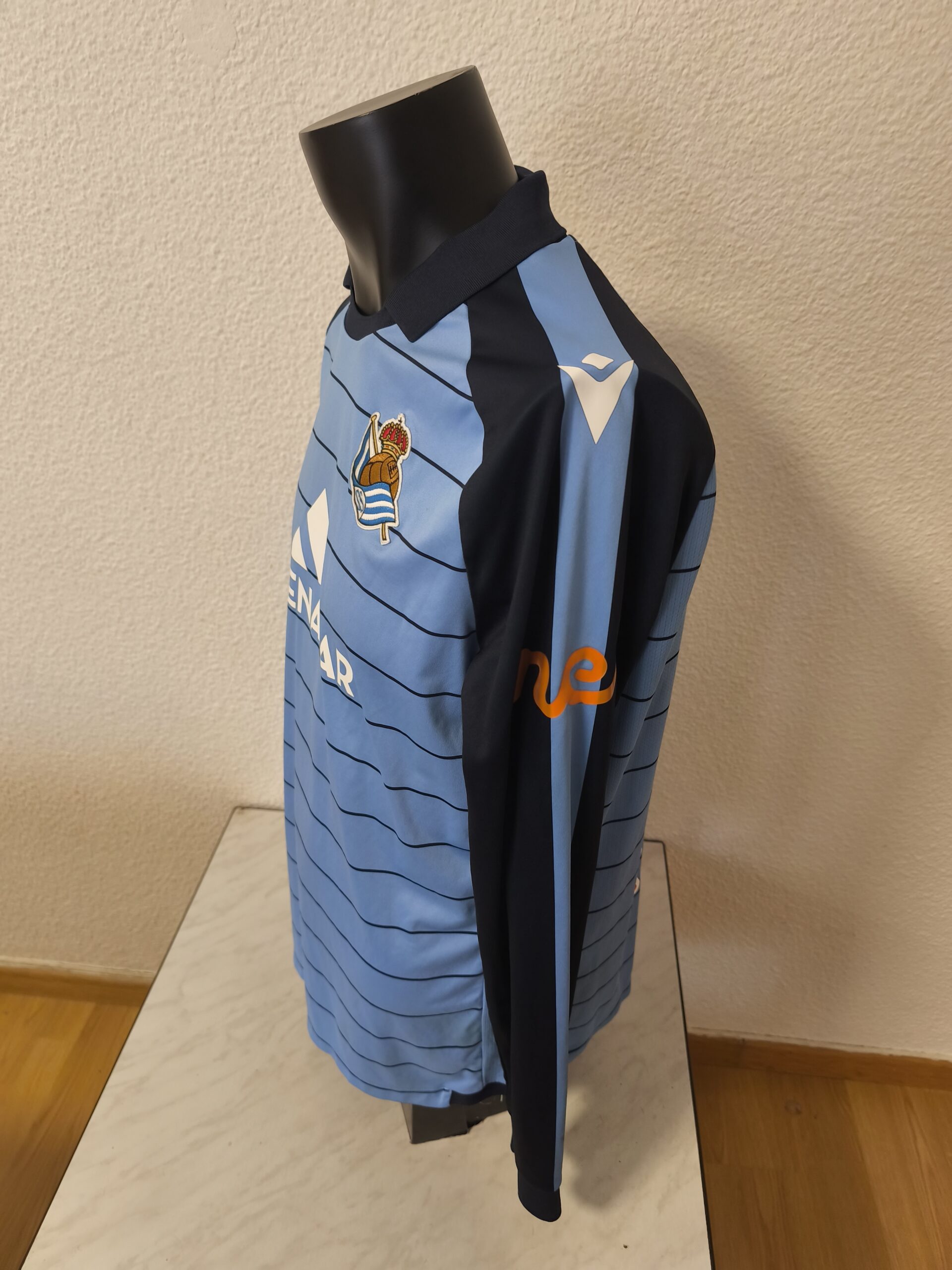 Camiseta primera equipación de la Real Sociedad, del primer equipo, de la 24/25, de esa temporada tengo la del filial contra el que jugamos y la del primer equipo sin numero pero con las publicidades que son diferentes.