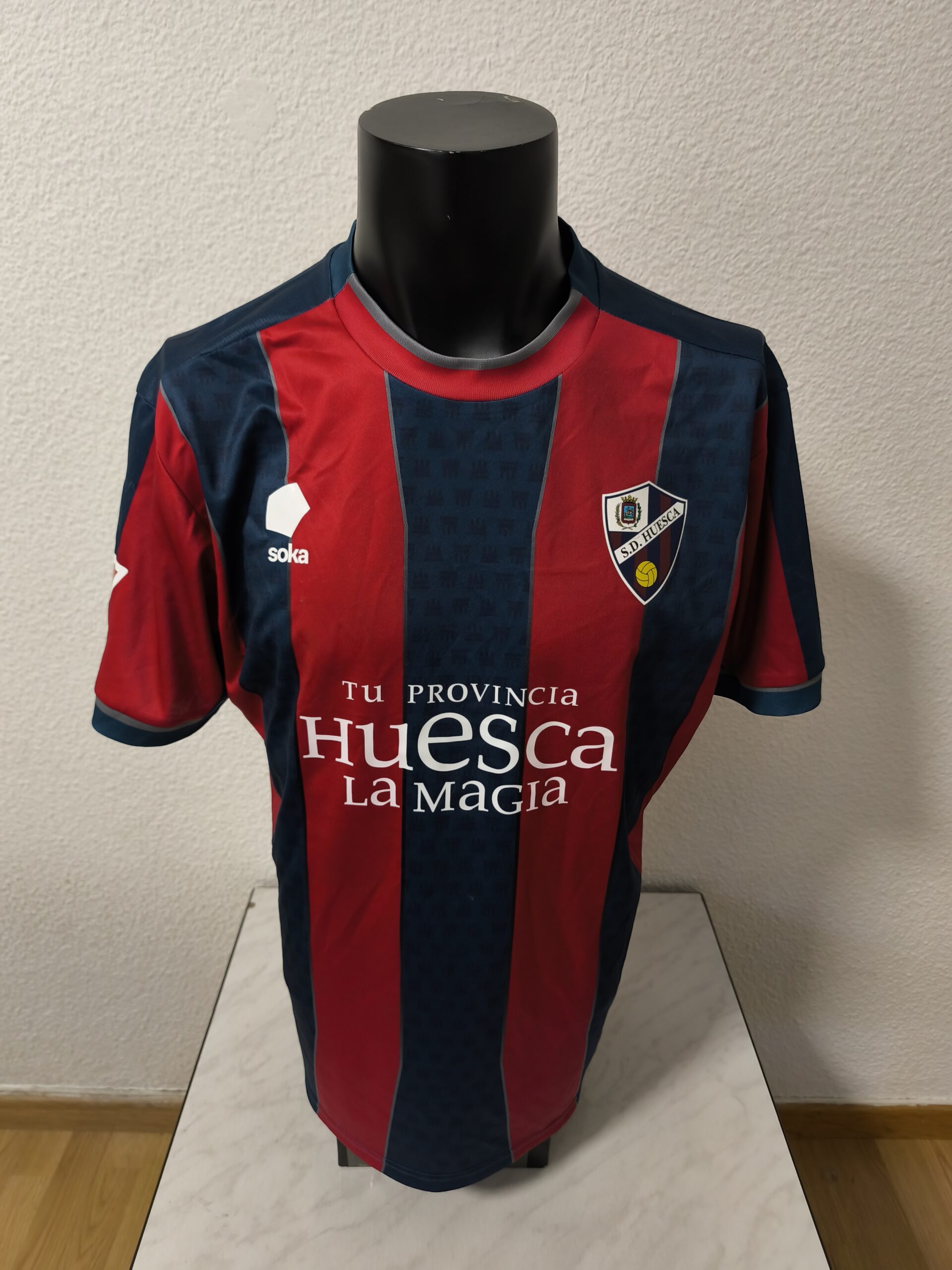 Camiseta primera equipación de la SD Huesca para la temporada 23/24, camiseta con la que nos enfretamos en segunda división.