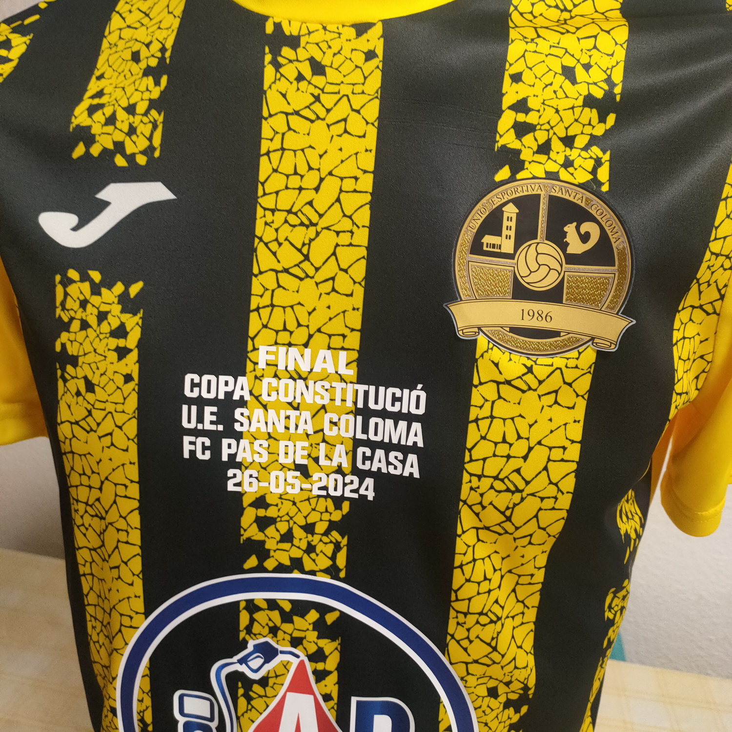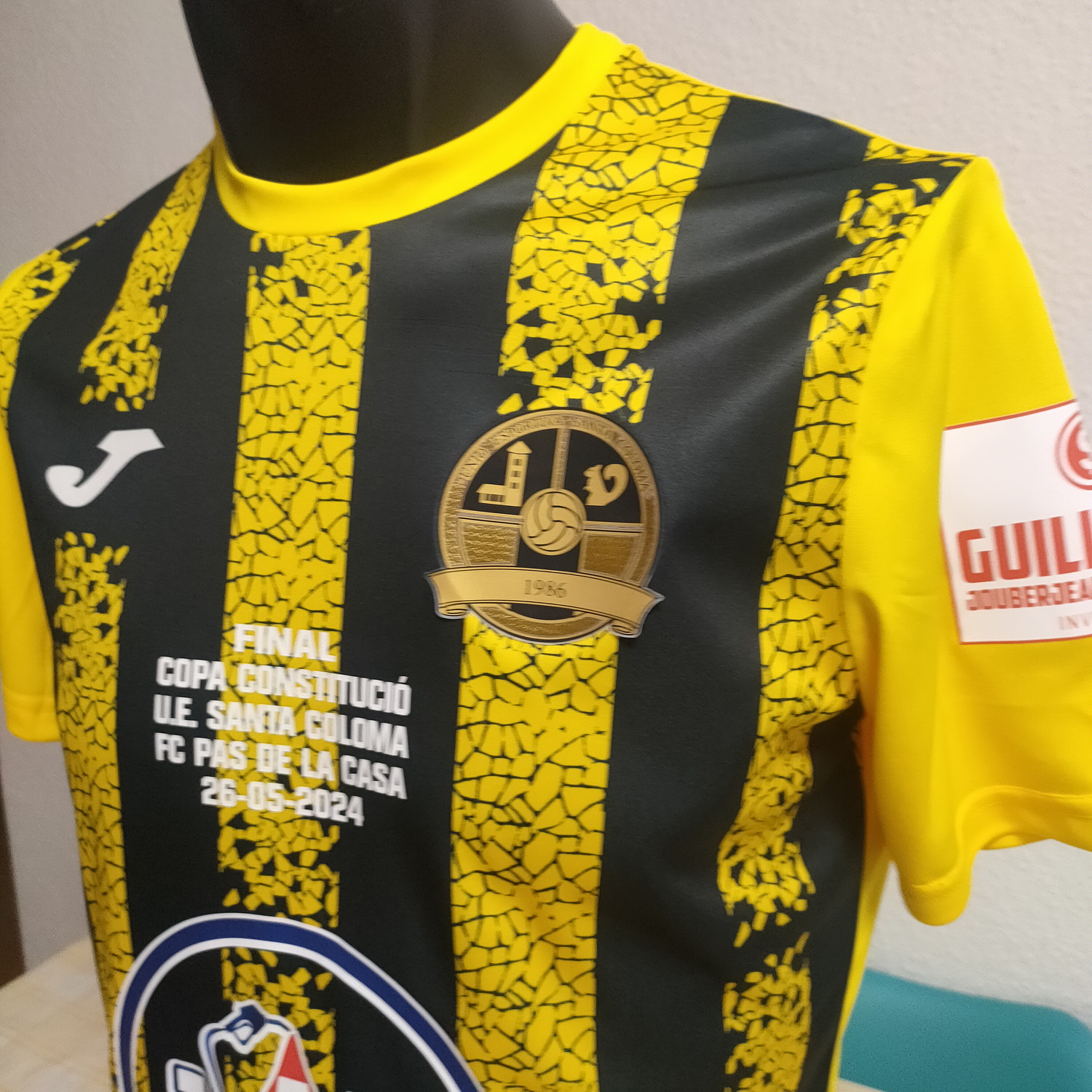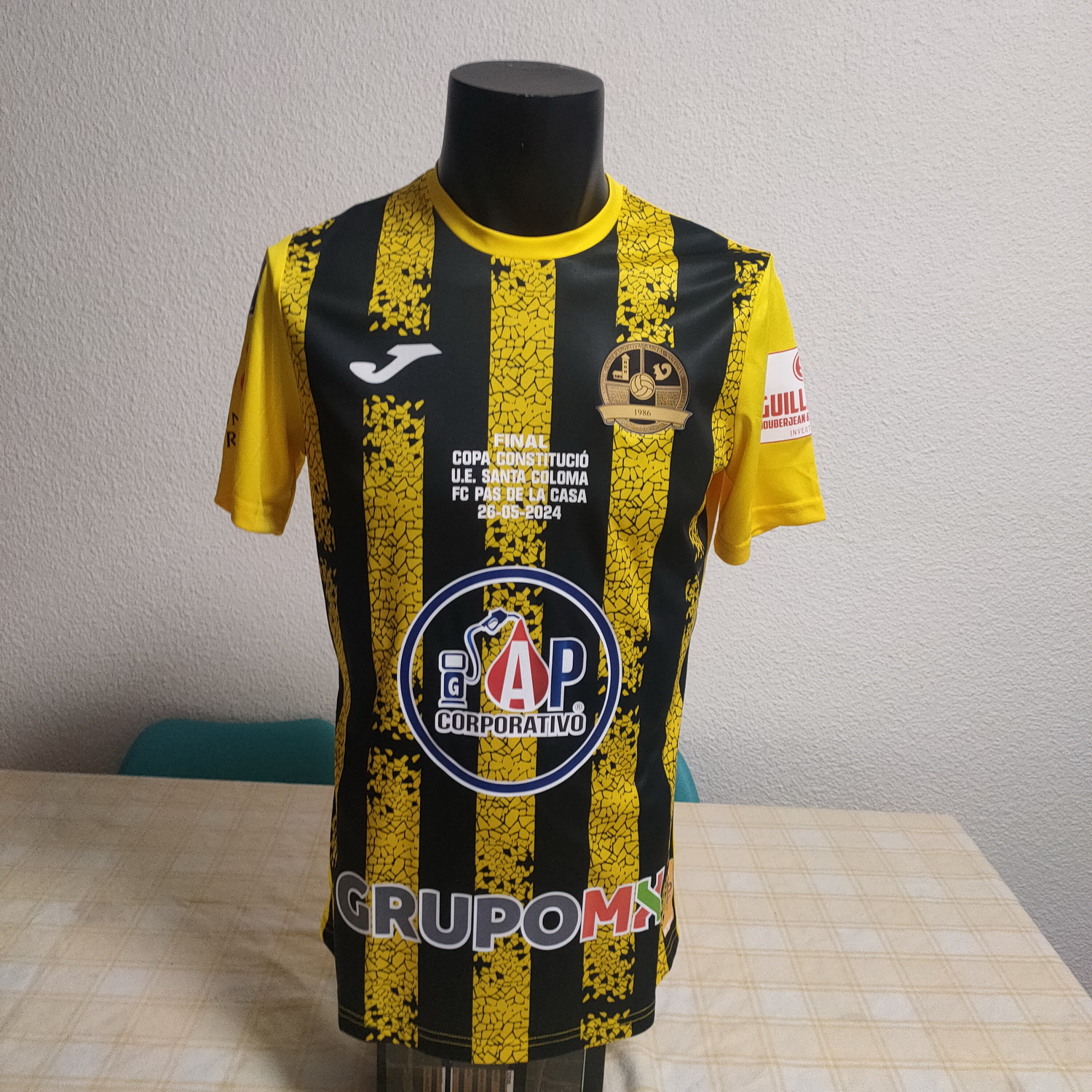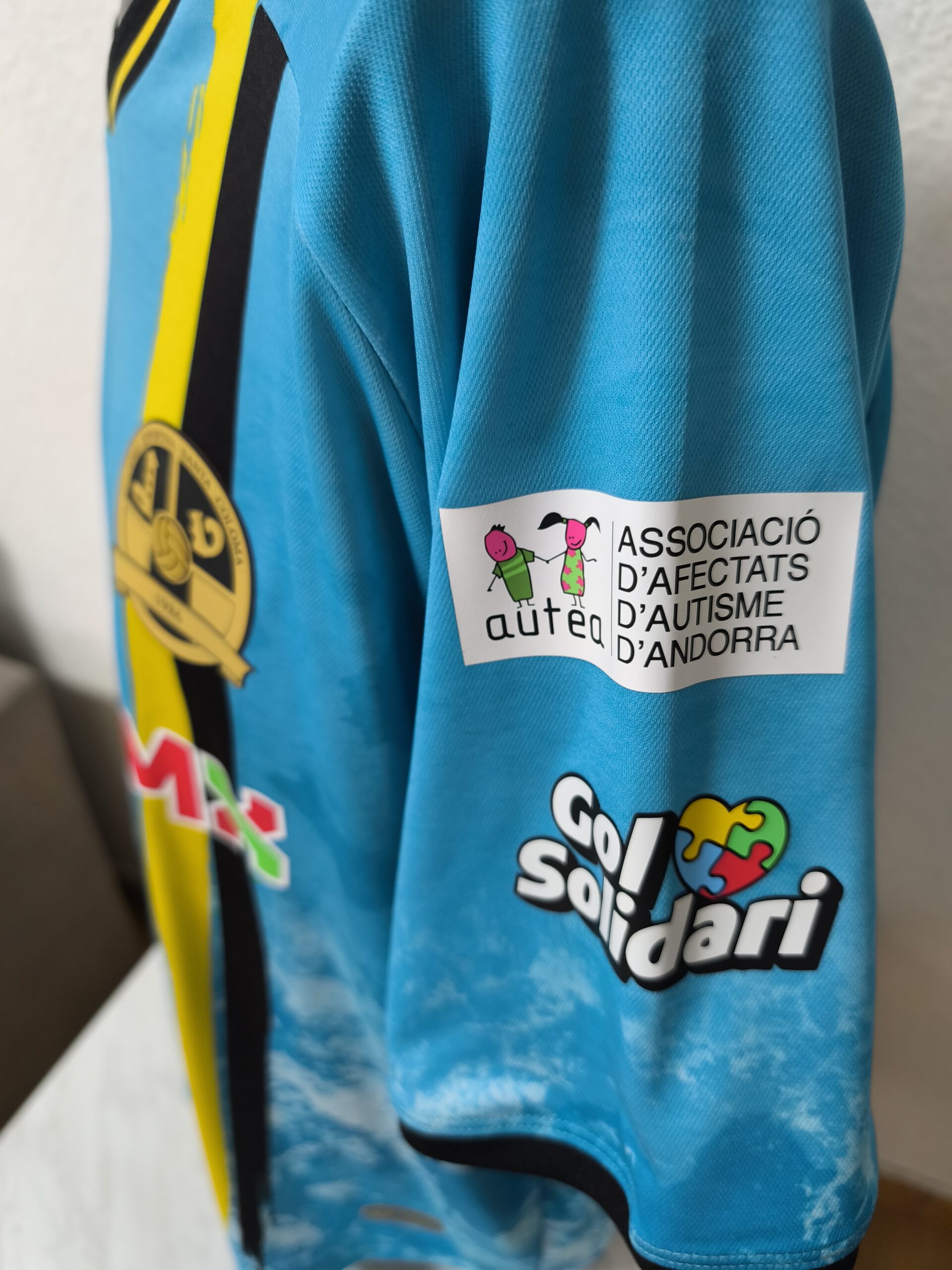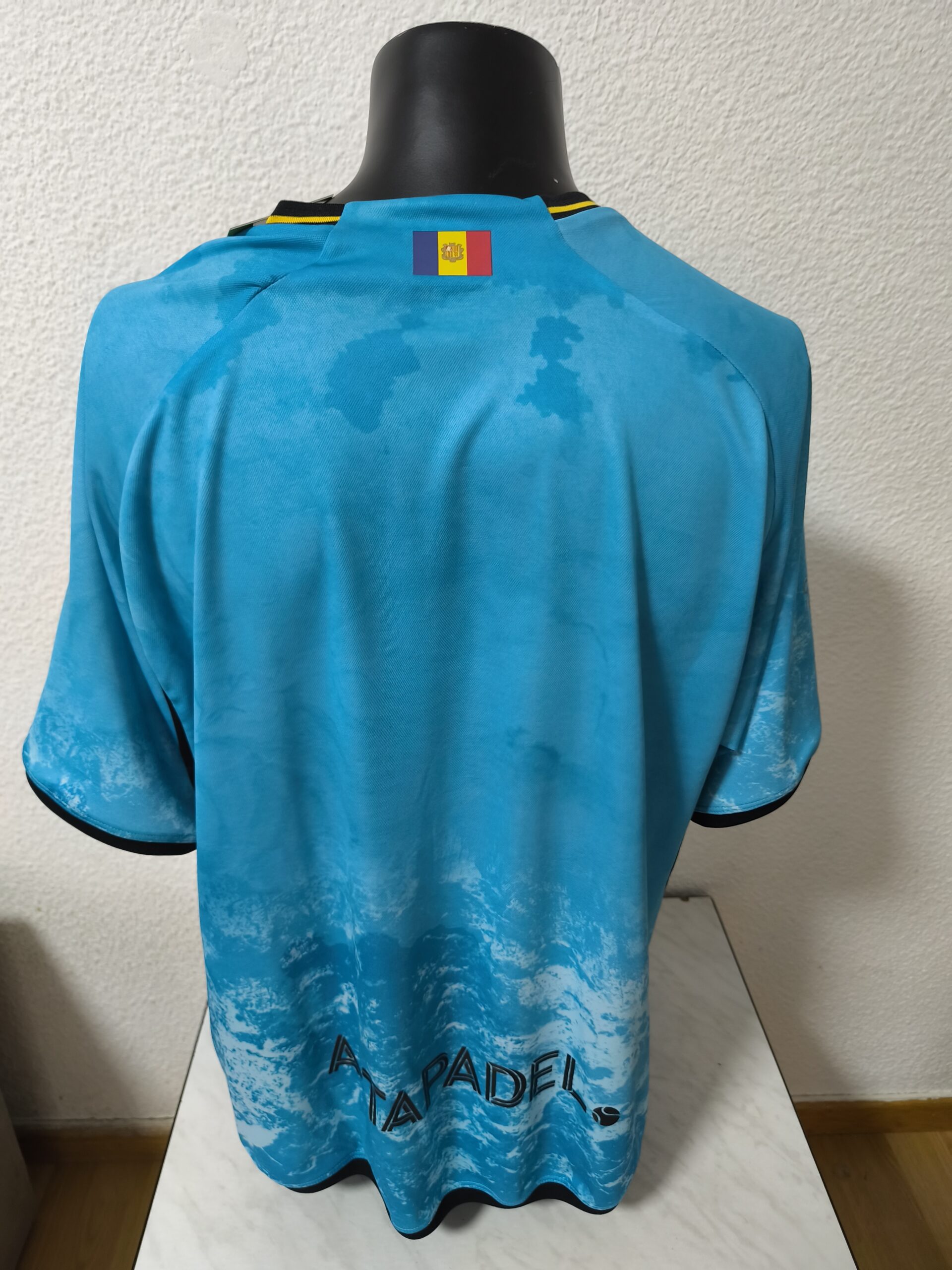 Camiseta usada durante un primer tramo de pretemporada de la temporada 21/22 por el equipo andorrano. Como novedad, es la primera temporada que la liga andorrana lleva parche en las camisetas de la competición.