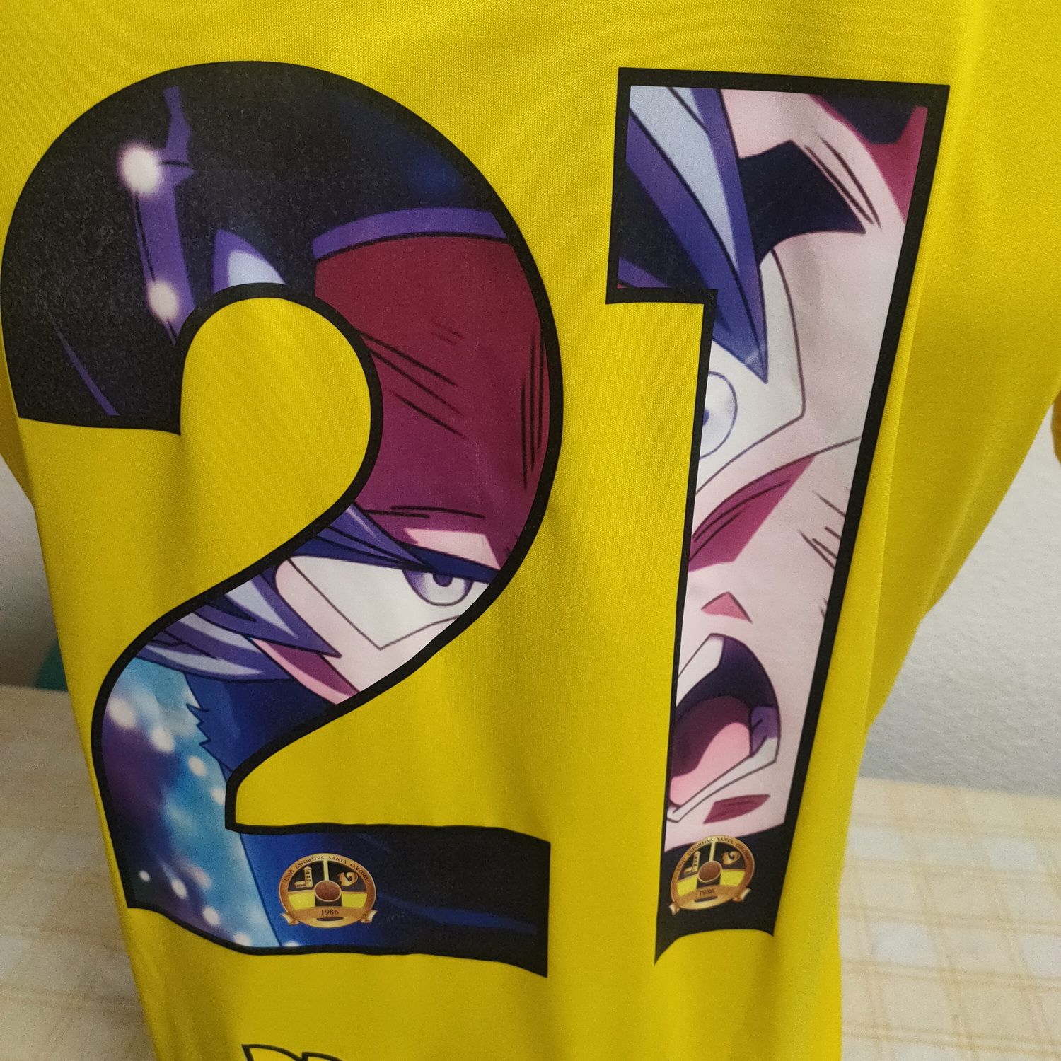 Camiseta especial preparada para el gran Ludovic Clemente. Una camiseta que sólo se usó para la disputa de la final de la copa constitucio de la temporada 23/24 contra el CF Pas de la Casa con victoria para la UE. Serigrafia de Dragon Ball.